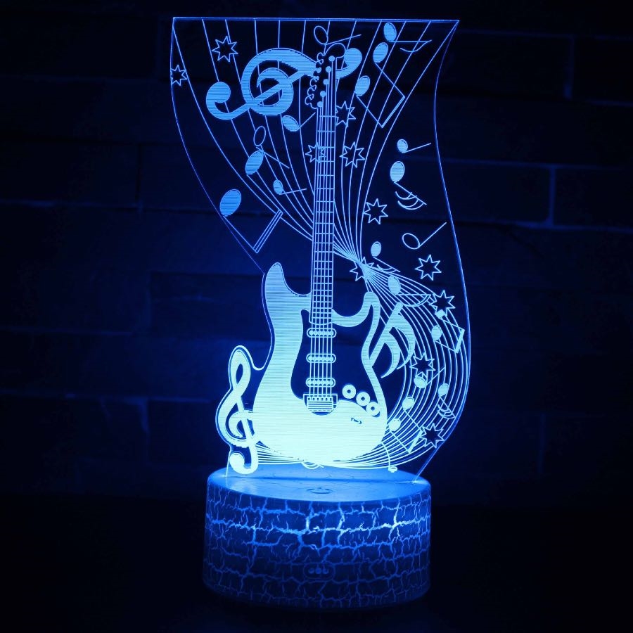 3D LED lampe med guitar og musikmotiv giver en flot visuel effekt og fungerer som dekorativ belysning.