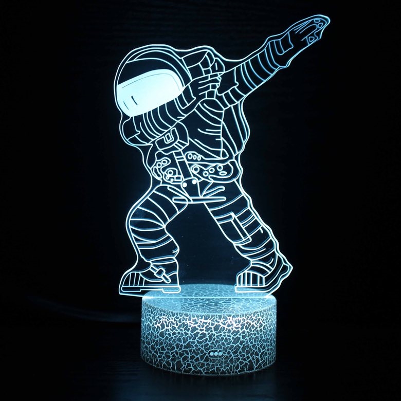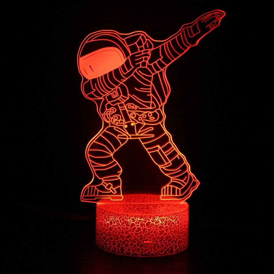 Denne Astronaut 3D LED-lampe er en dekorativ akryllampe med flot 3D-illusion, der skaber et sjovt og iøjnefaldende udtryk, når lyset er tændt. Astronauten i den populære “dab”-positur giver lampen et moderne og legende look, som især appellerer til børn, unge og rumentusiaster.