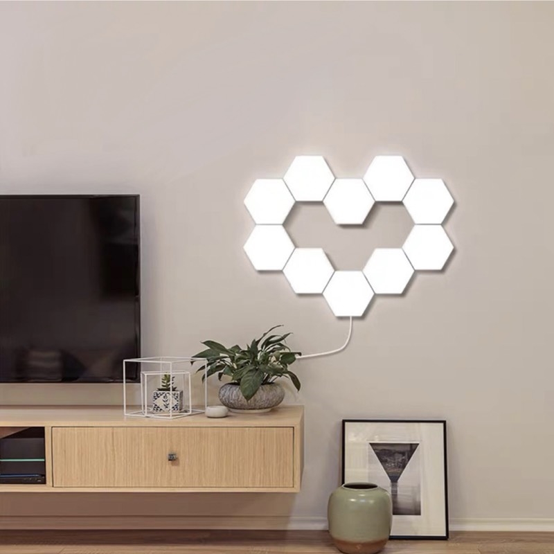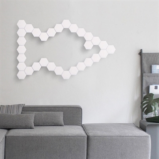 Lampen består af et antal sekskanter, der kan forbindes ved hjælp af magneter og kan låses sammen i mønstre for at danne en vægbelysning.