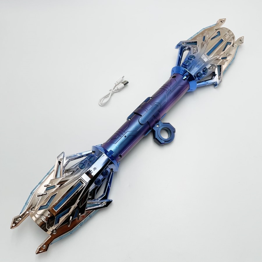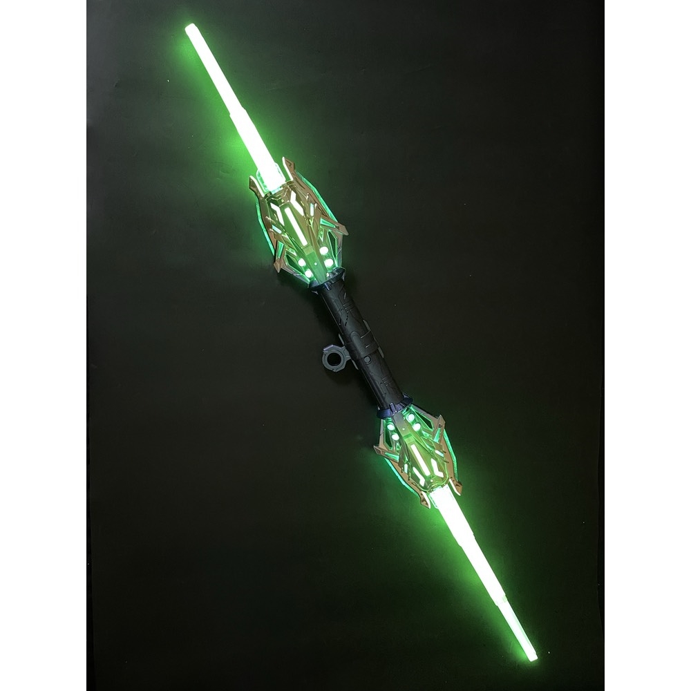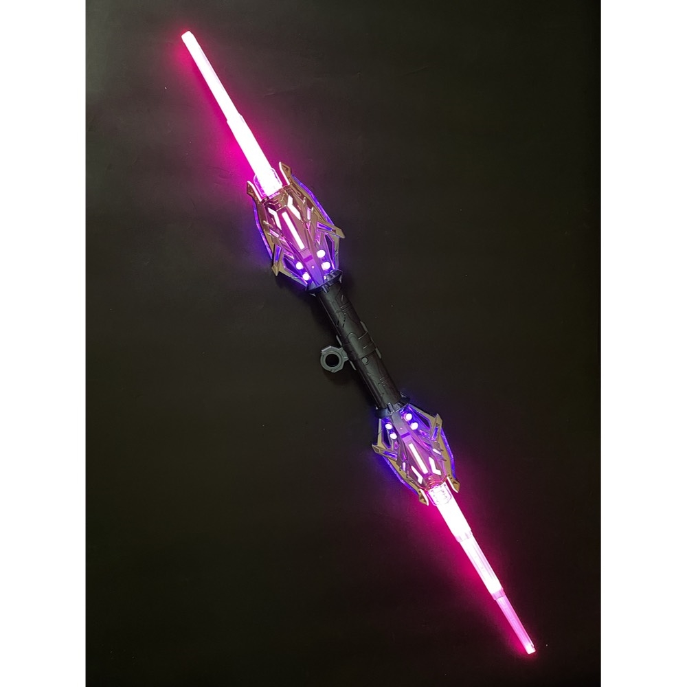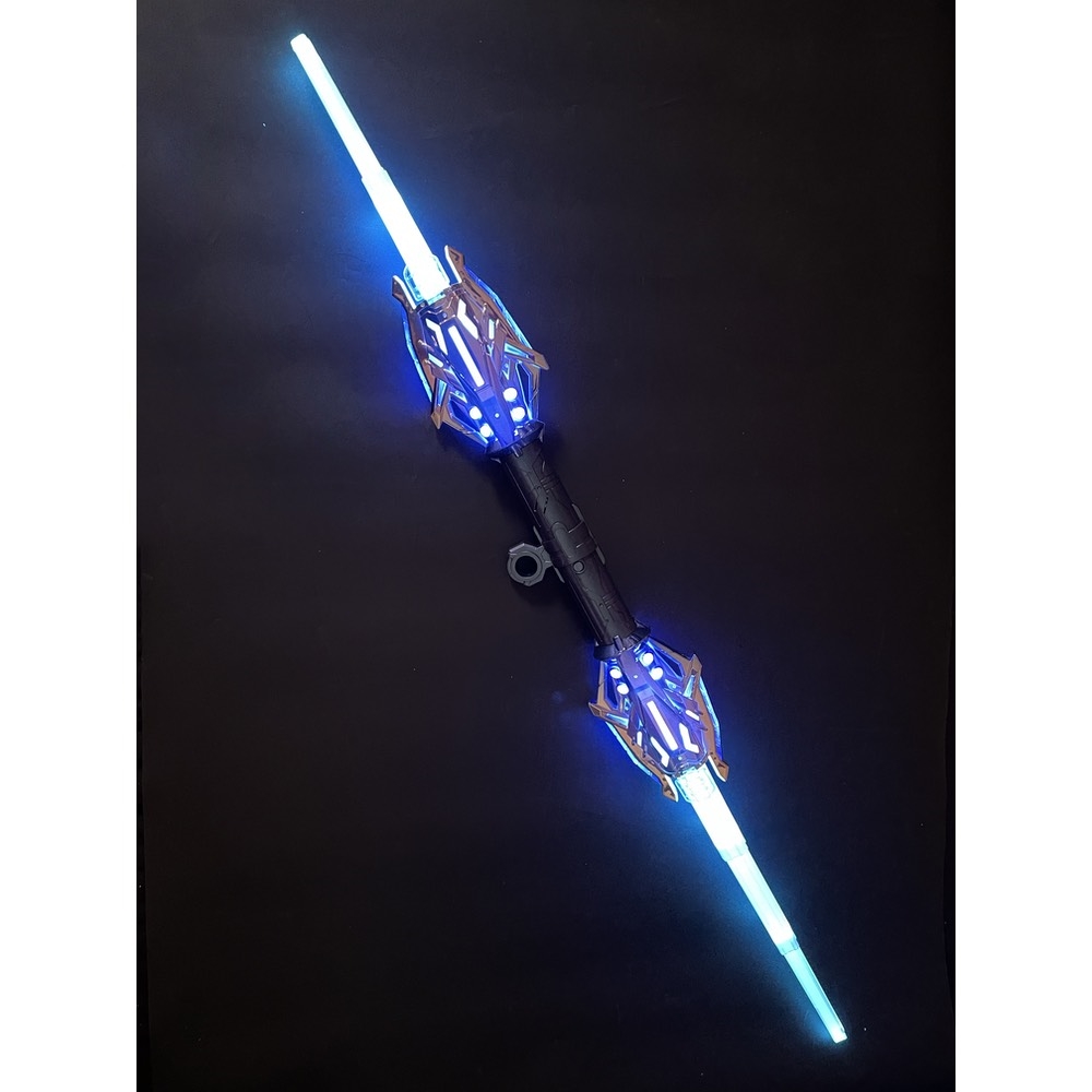 Dobbelt lyssværd teleskopisk giver en spektakulær oplevelse med hele 24 forskellige lysfarver og flere realistiske lydeffekter. Sværdet kan strækkes ud til fuld længde (118 cm) og foldes sammen igen, hvilket gør det både sjovt og praktisk.