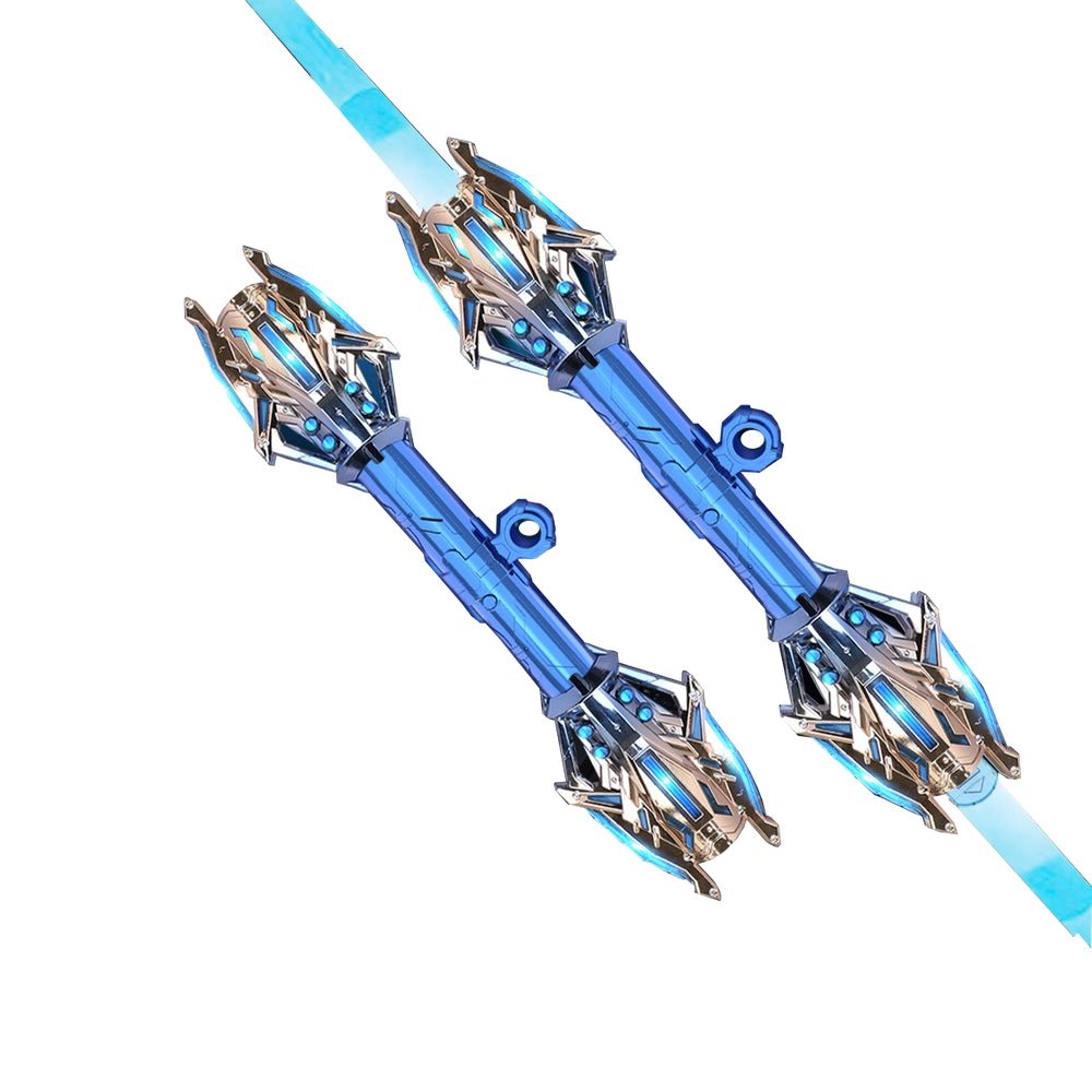 Dobbelt lyssværd teleskopisk – 24 lysfarver, lydeffekter, genopladeligt – Blå/guld håndtag