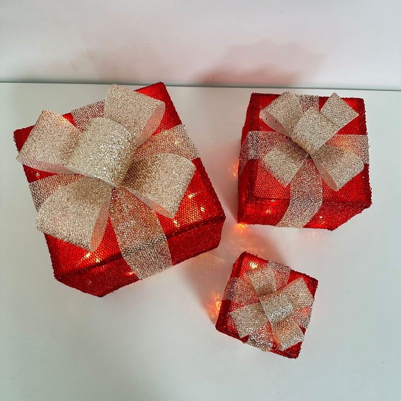 Gaveæsker i rød glitterstof med LED-lys – sæt med 3 stk.Gaveæsker i rød glitterstof med LED-lys – sæt med 3 stk.Gaveæsker med LED-lys – sæt med 3 stk.Gaveæsker i rød glitterstof med LED-lys – sæt med 3 stk.