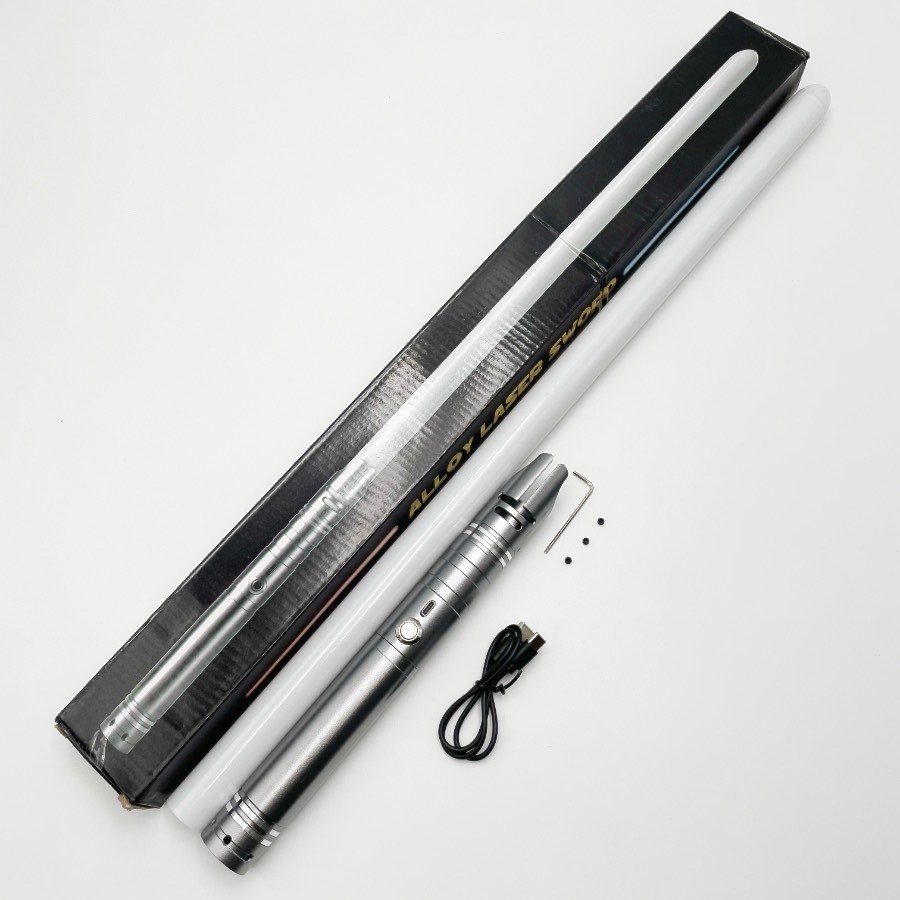 Lyssværd med 14 lysfarver og lydeffekter - Genopladeligt - Grå håndtag