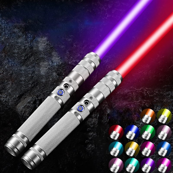 Lyssværd med farverige lys- og lydeffekter - Genopladeligt - Sølv håndtage -14 lysfarver - 2 stk.