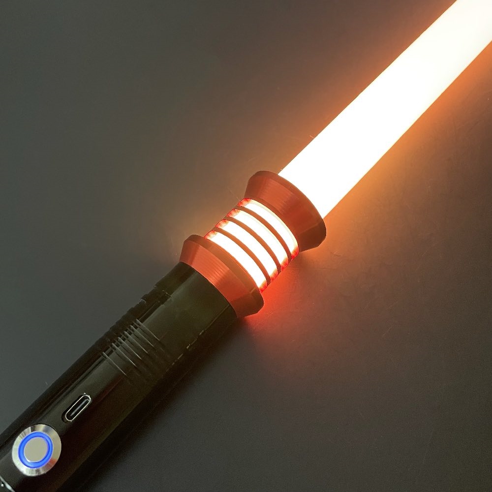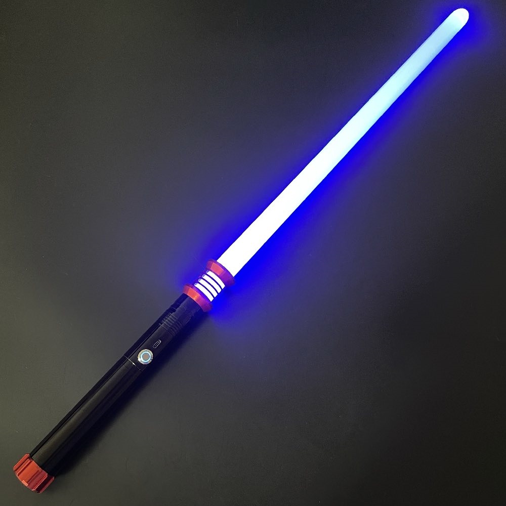 Lyssværd med farverige lys- og lydeffekter - Genopladeligt - Sort & rød håndtag - 14 lysfarver