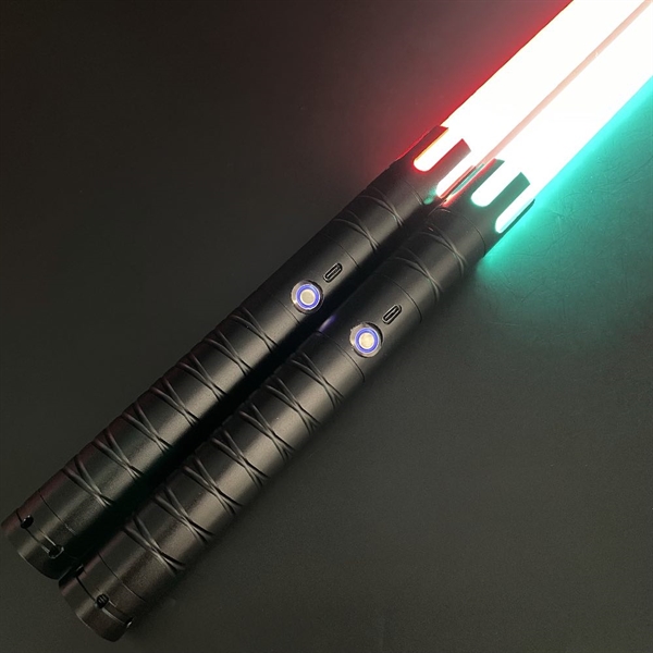 Lyssværd med farverige lys- og lydeffekter - Genopladeligt - Sort håndtag - 14 lysfarver - 2 stk.- Stil 4