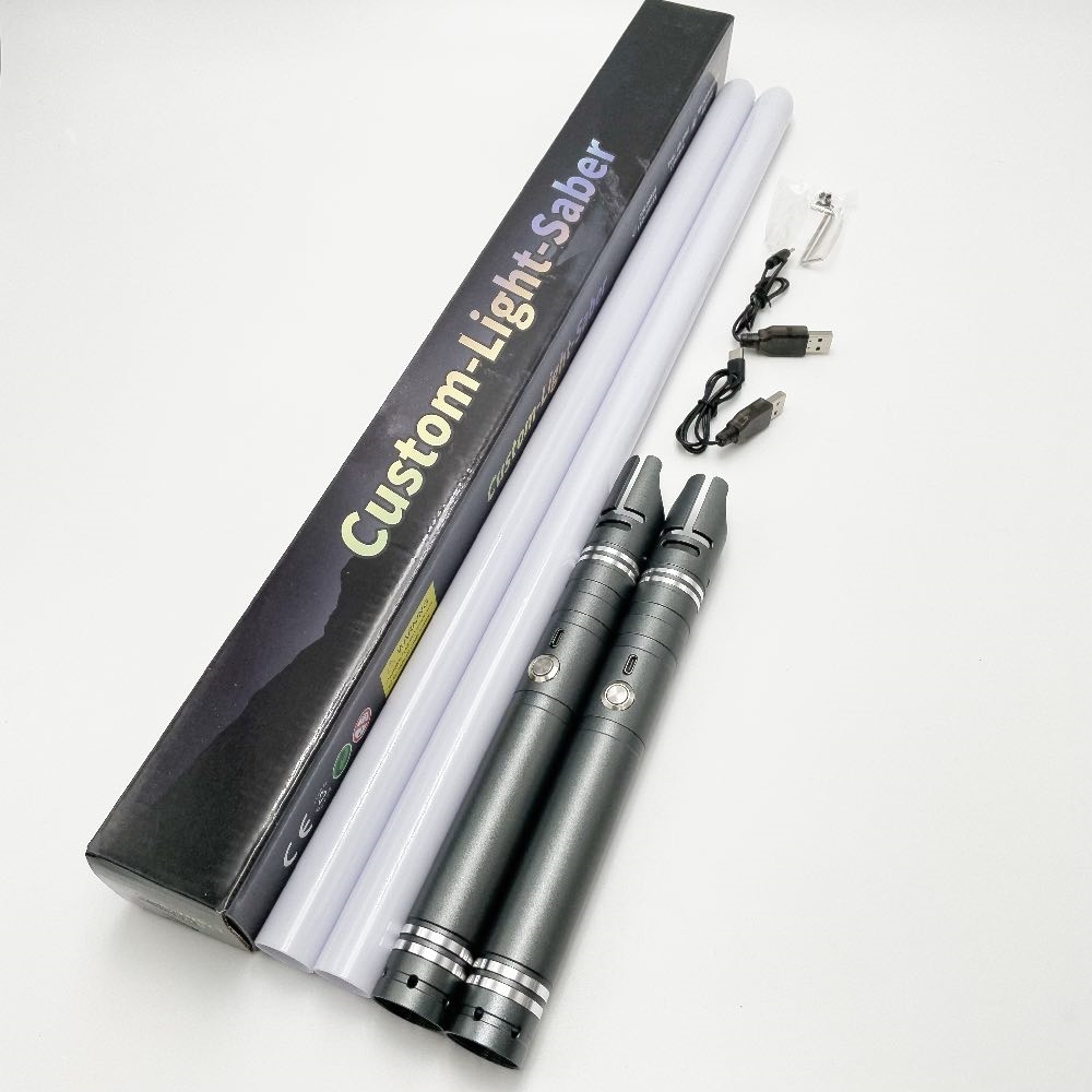 Lyssværd med 7 lysfarver og lydeffekter - Genopladeligt - Grå håndtag - 2 stk.