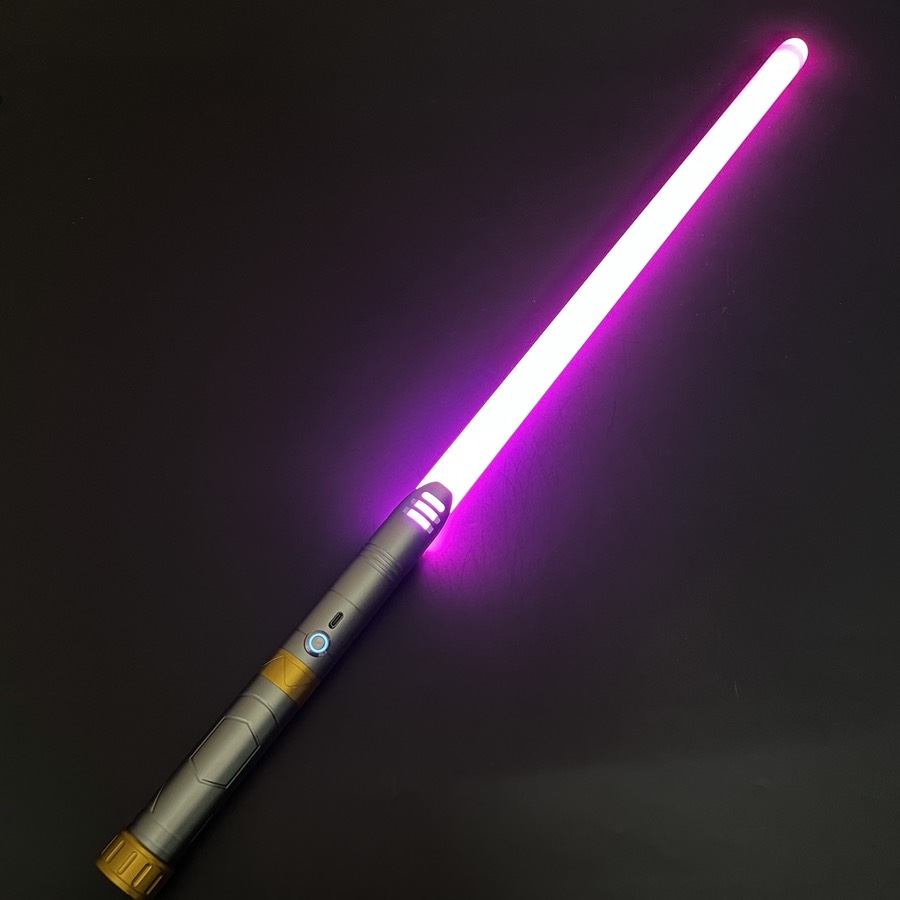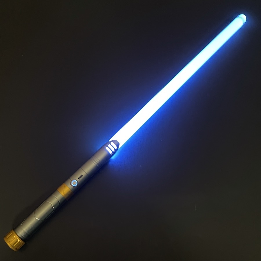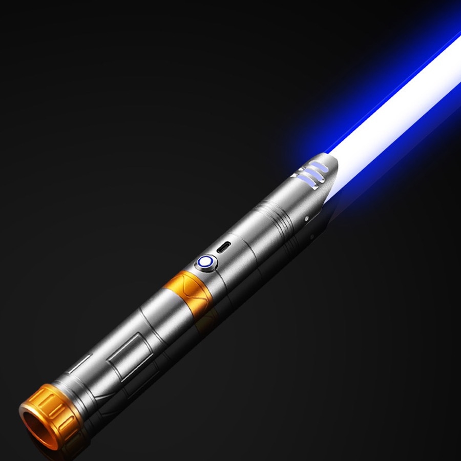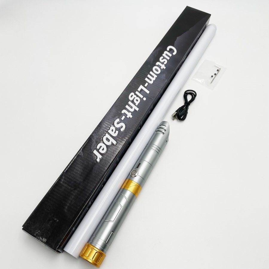 Lyssværd med farverige lys- og lydeffekter - genopladeligt - Grå & guld håndtag - 14 lysfarver - 1 stk. - Stil 8