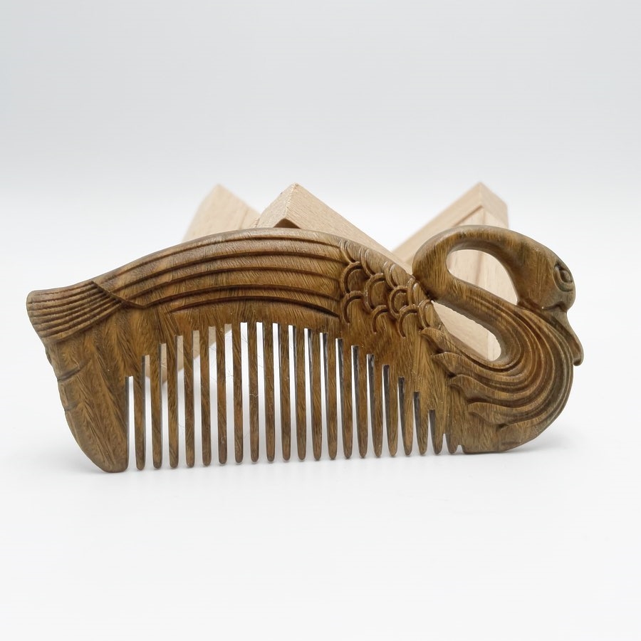 Håndlavet trækam i svaneform