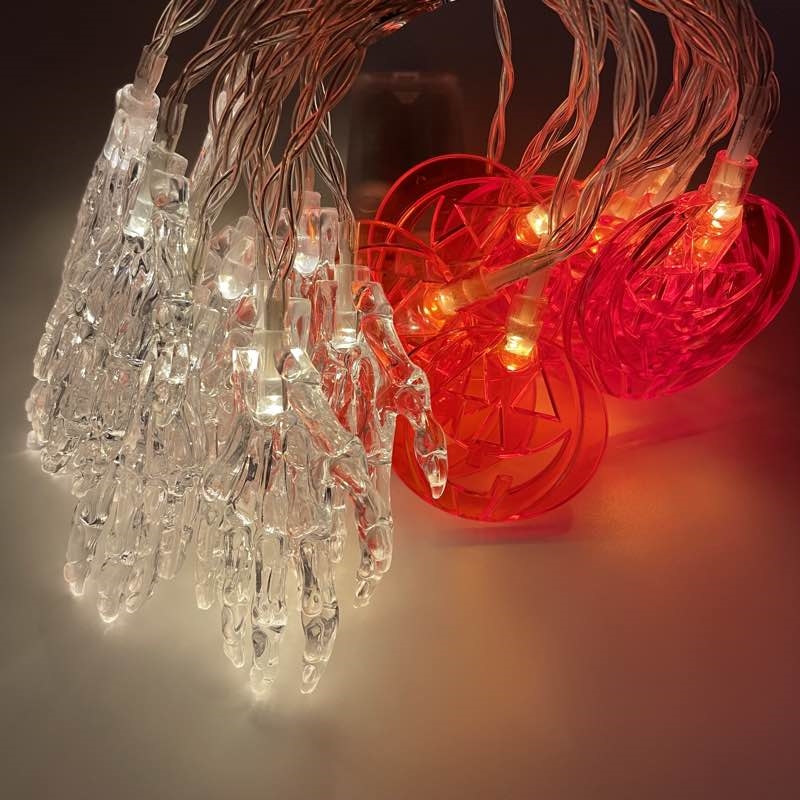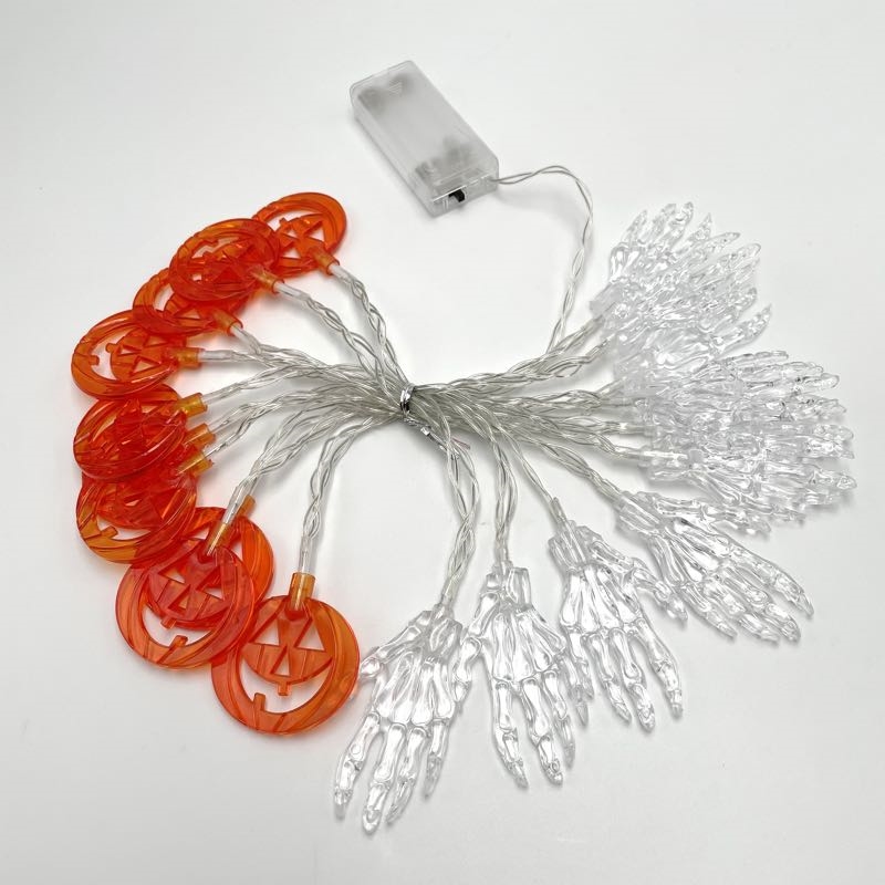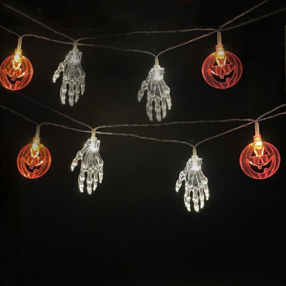 Halloween lyskæde med kraniehænder og græskar - 3 m 20 lys