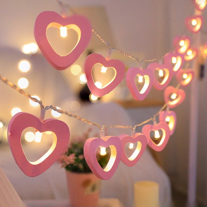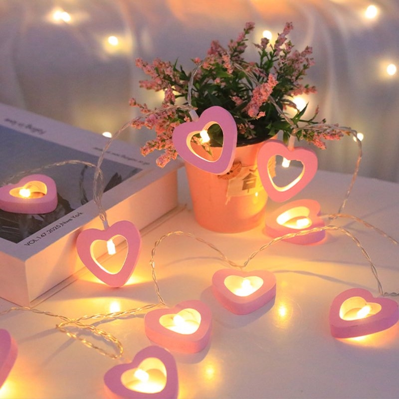 De lyserøde hjerter giver en dekorativ belysning, der skaber en rolig og hyggelig stemning og passer godt til både rum og festlige anledninger.
