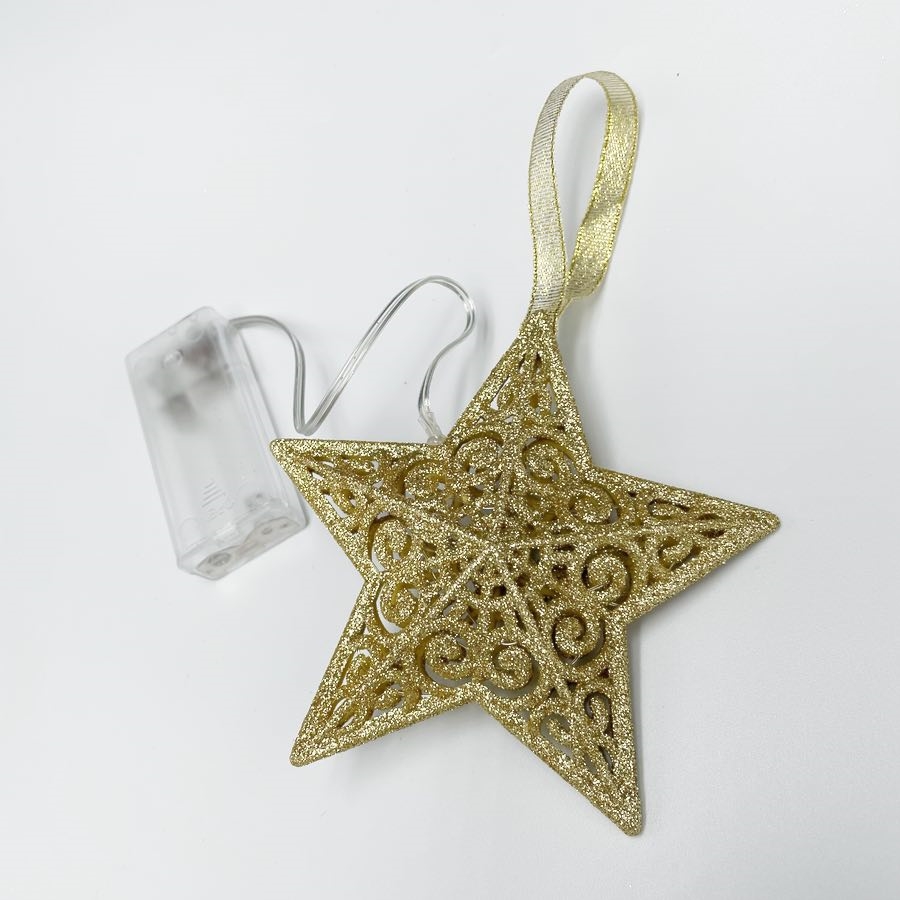 Denne dekorative LED-julestjerne med glimmer fås i både guld og sølv, så du kan vælge den farve, der passer bedst til din julepynt.