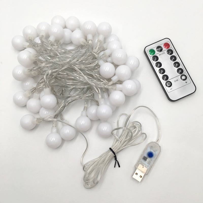 USB-drevet kirsebærkugler lyskæde med fjernbetjening - 5 m 50 lys