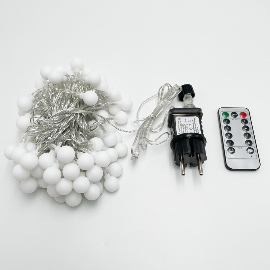 Kirsebærkugle lyskæde med fjernbetjening- 10 m 100 lys -​​​​​​​ drevet af adapter