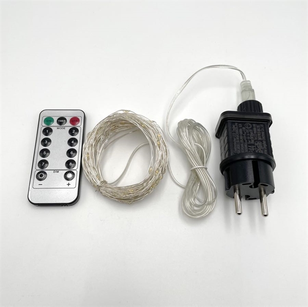 LED kobber lyskæde med fjernbetjening - 20 M 200 lys - SølvLED kobber lyskæde med fjernbetjening