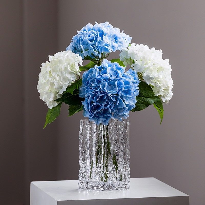 Kunstig hortensiabuket i blå og hvid – realistiske blomster til dekoration