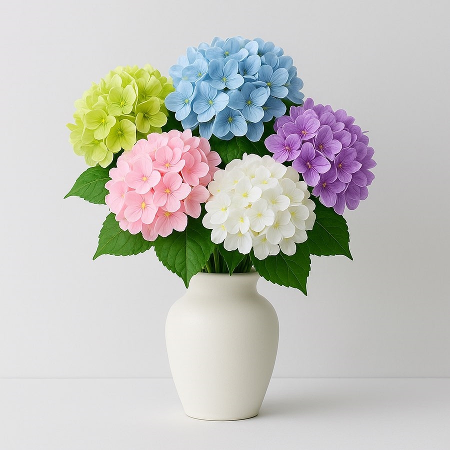 Kunstig hvid hortensia med stilkKunstig blå hortensiagren – enkelt stilk til buketter og vaserKunstig hortensia med stilkKunstig hortensiabuket i mixfarver – dekorativ og vedligeholdelsesfri blomst