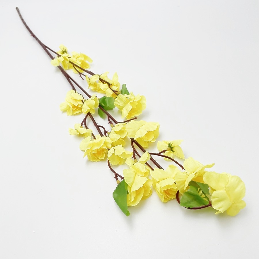 Smukke og livagtige kunstige ferskenblomster i silketekstil – perfekte til dekoration i hjemmet eller til events. Hver stilk er 63 cm lang og har tre forgreninger. Findes i farverne lyserød, rød, gul, mørk rosa og hvid. Nemme at arrangere og kræver ingen vedligeholdelse.