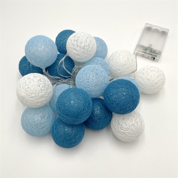 LED lyskæde med bomuldsbolde i forskellige farver - 3 m 20 lys - diameter 5 cm