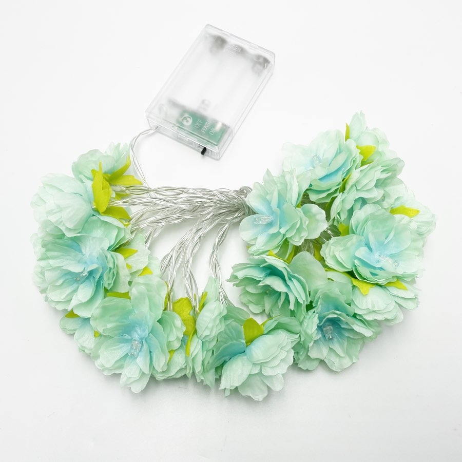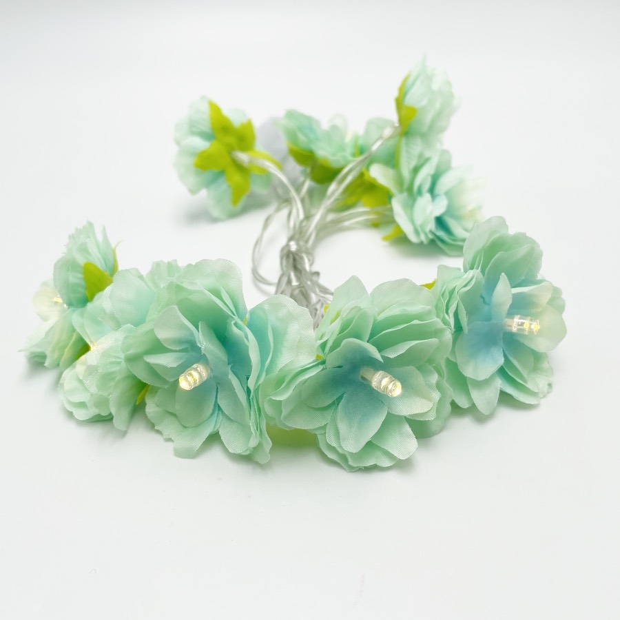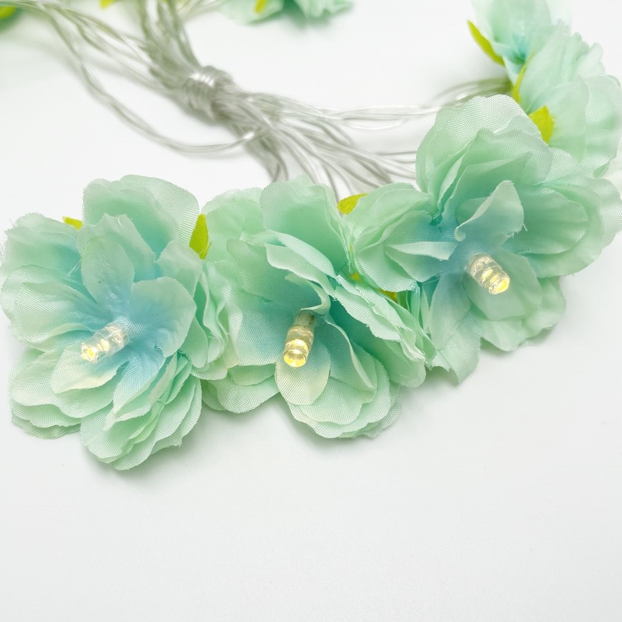 LED blomster lyskæde i mintgrøn