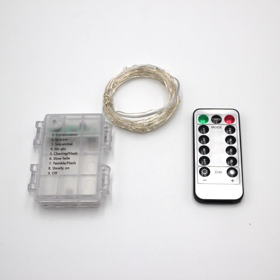 Denne lyskæde har 8 lystilstande. Man kan skifte lystilstand via fjernbetjeningen eller tryk på knappen på batteriboksen. Fjernbetjeningen har timefunktion. Tænder i 6 timer og slukker automatisk. Lysniveauet kan dæmpes via fjernbetjeningen.