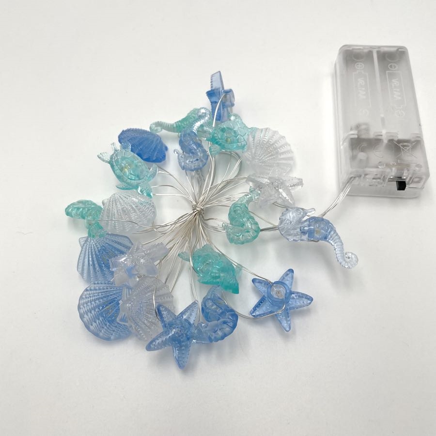 Hver lyskæde har en række forskellige stranddyr såsom søstjerner, søheste, muslinger og skildpadder, der er lavet af miljøvenlig plastik. Stranddyrene er omhyggeligt udformet for at give en autentisk og realistisk følelse, så du kan forestille dig, at du er på stranden, når du ser på dem.