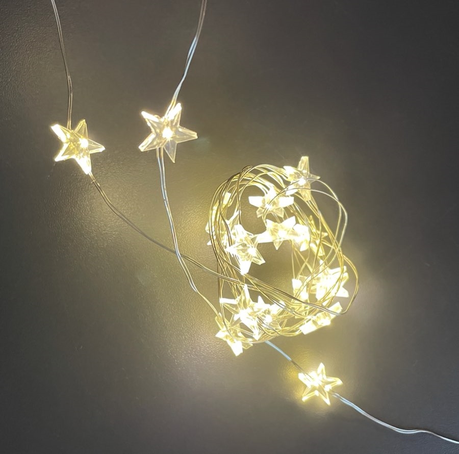 LED kobberlyskæde med stjernerLED kobberlyskæde med stjerner – 2 mLED kobberlyskæde med stjerner – 4 m