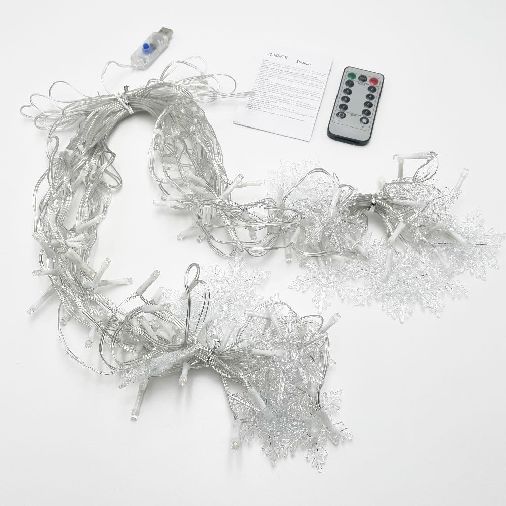 Den elegante lyskæde har hængende snefnug og varme hvide LED-lys, der giver et blødt og indbydende skær. Gardinet er perfekt til både jul og vinterdekorationer, men kan også bruges året rundt for at skabe en magisk stemning i dit hjem eller til særlige begivenheder.
