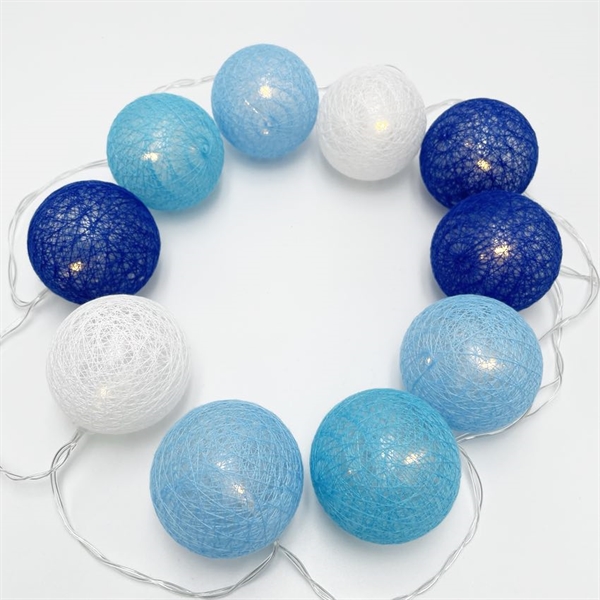 LED lyskæde med blå og hvide bomuldskugler – 1,5 m 10 LEDs - Ø 6 cm