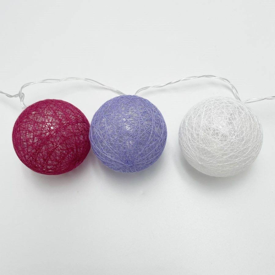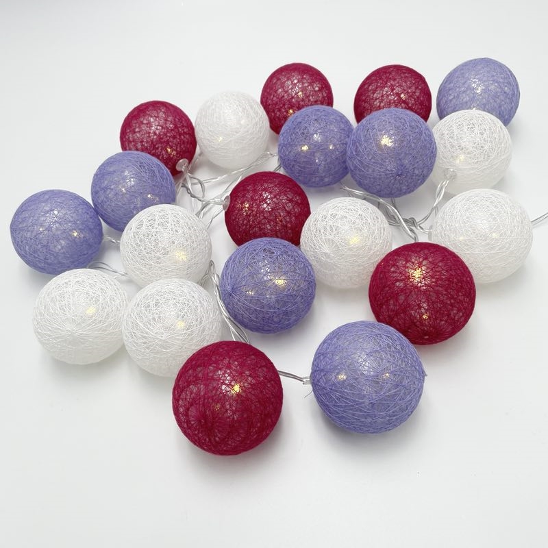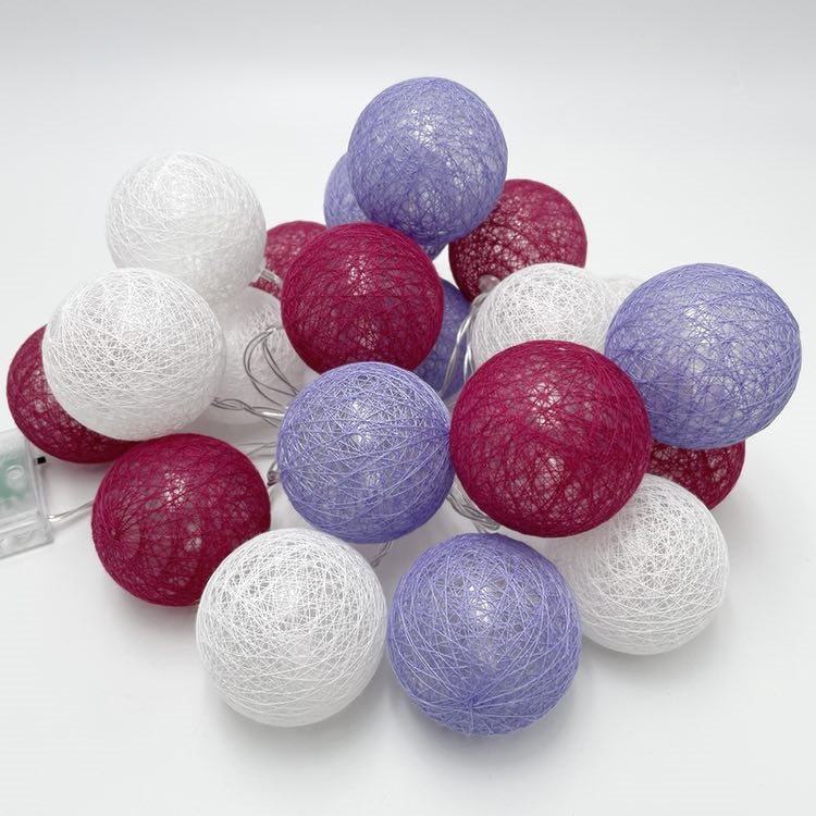 LED lyskæde med bomuldskugler i bordeaux, lilla og hvid – 1,5 m / 3 m