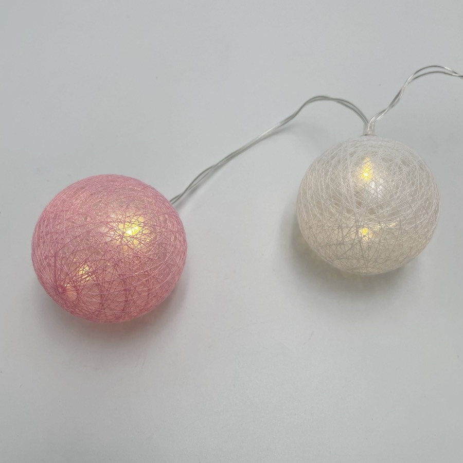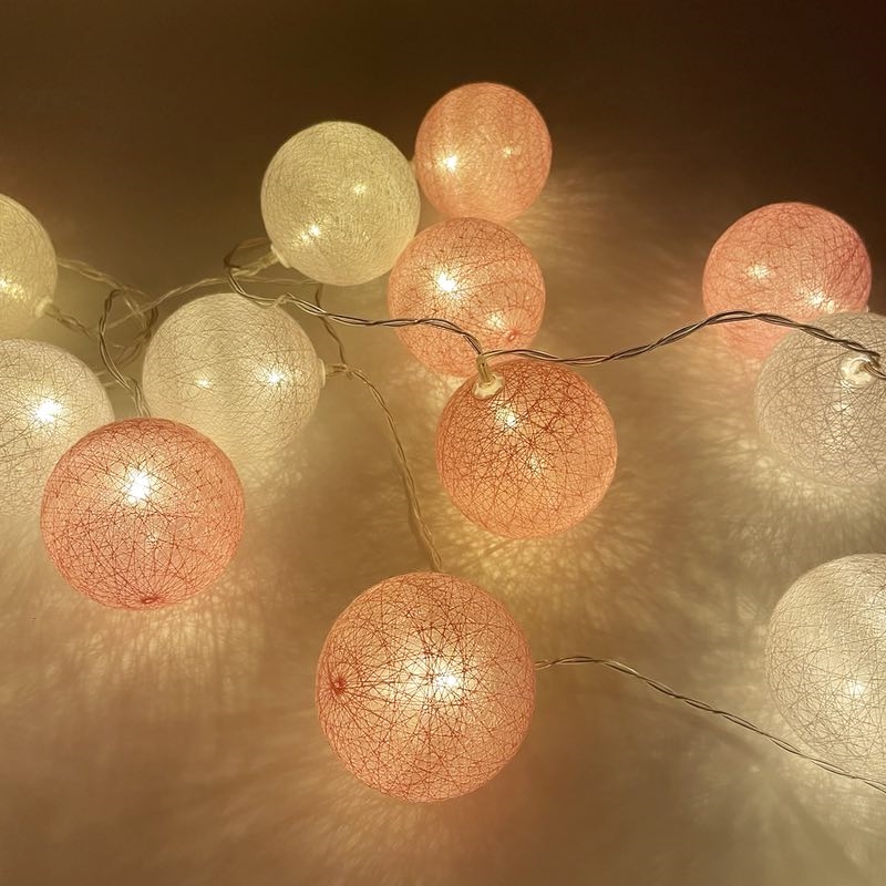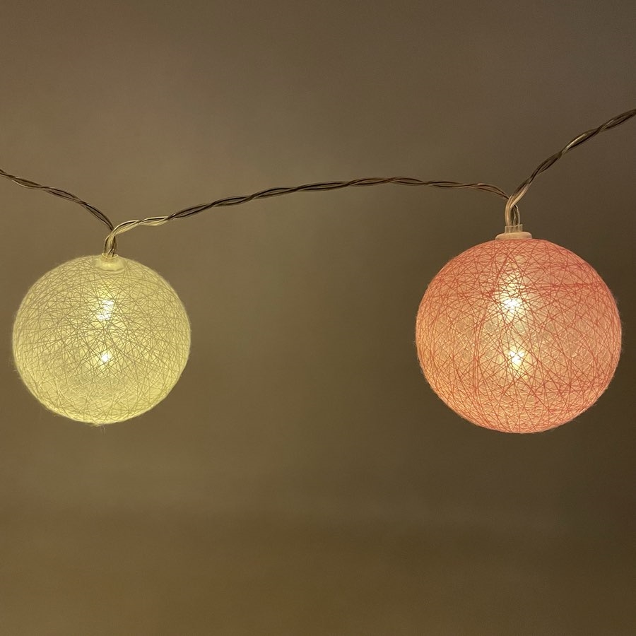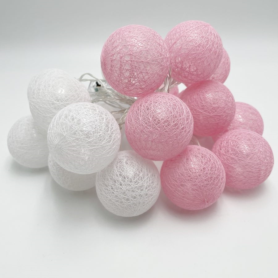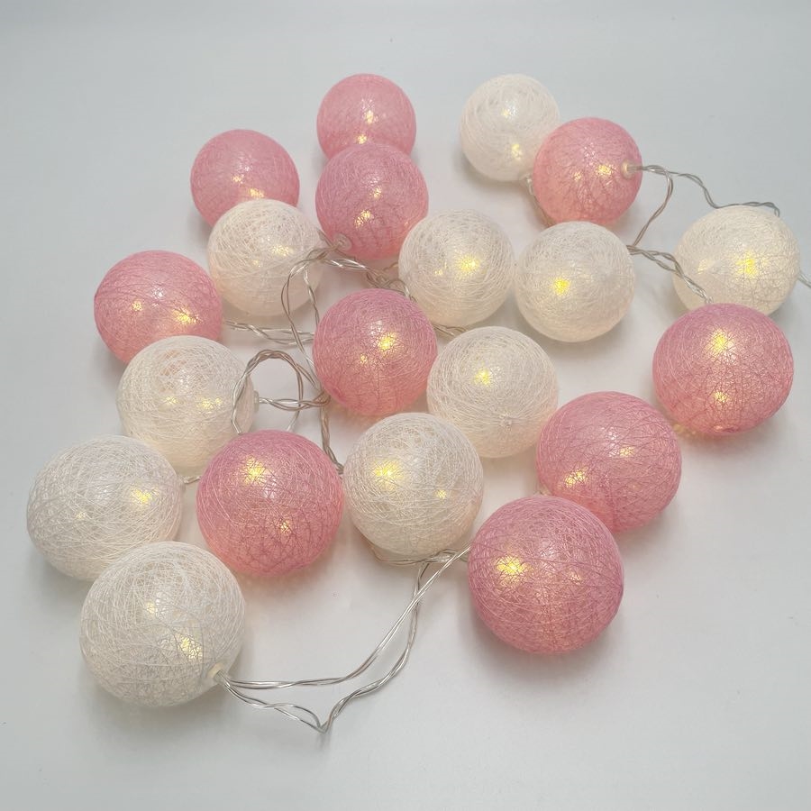 LED lyskæde med bomuldskugler i lyserød og hvid – 2 m, 3 m