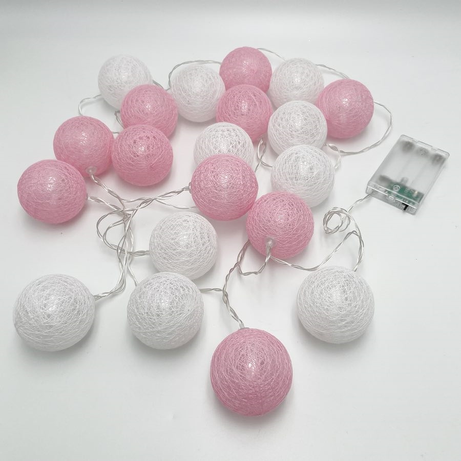 LED lyskæde med bomuldskugler i lyserød og hvid – 3 m 20 LED