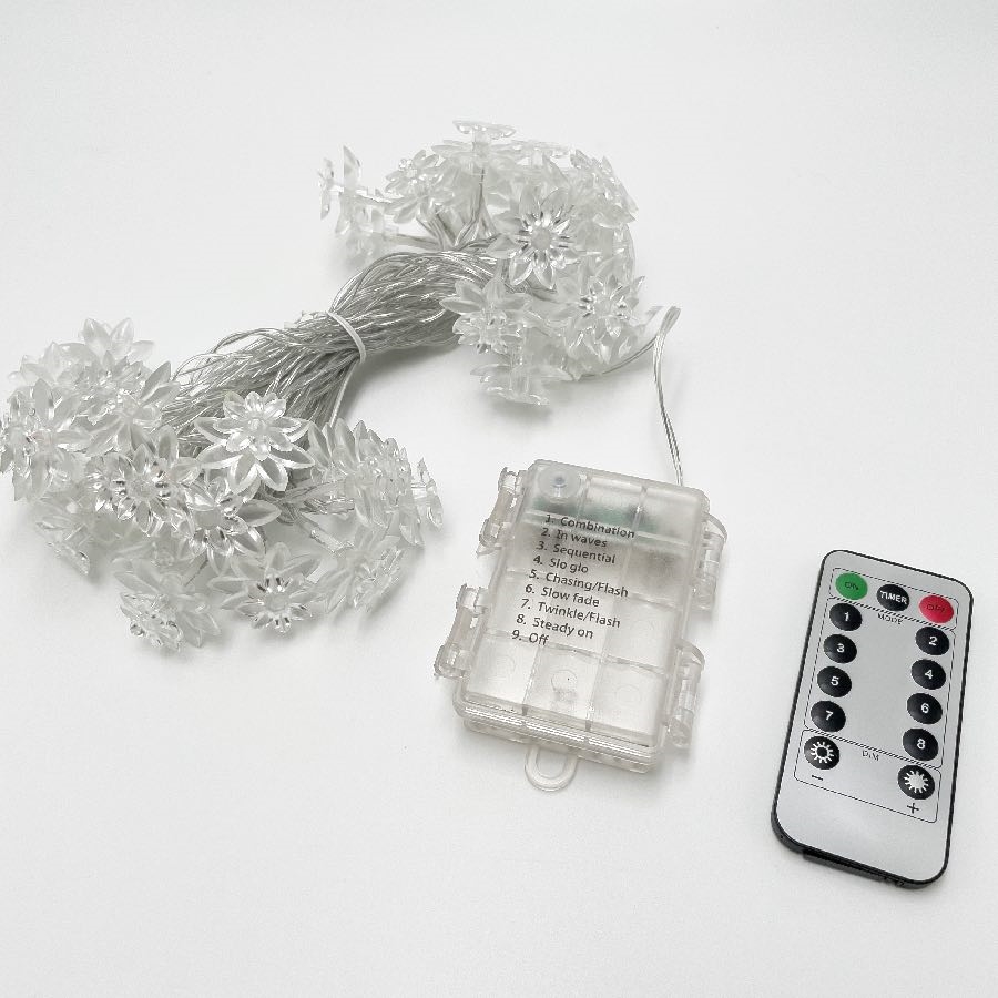 Batteridrevet lyskæde med lotusblomster og fjernbetjening – farverige lys – 6 m 40 lys