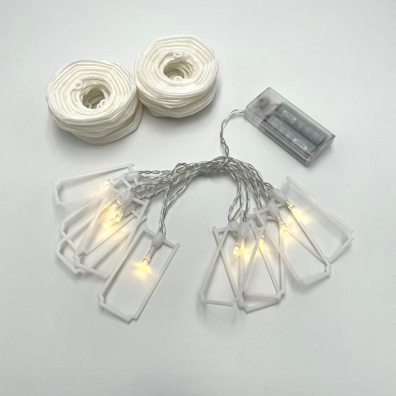 Denne LED-lyskæde med 10 hvide lanterner er en charmerende og stemningsfuld tilføjelse til dit hjem eller dit specielle arrangement.
