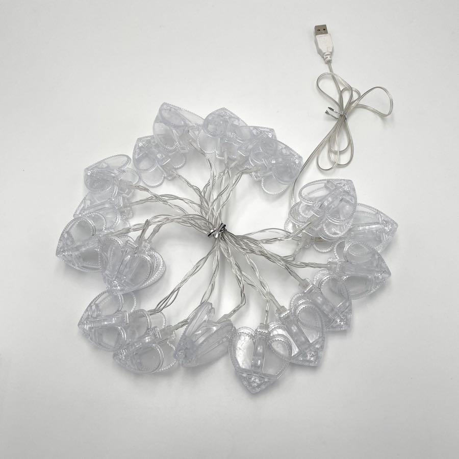 USB-drevet lyskæde med hjerteformede klemmer - 3 M 20 lys