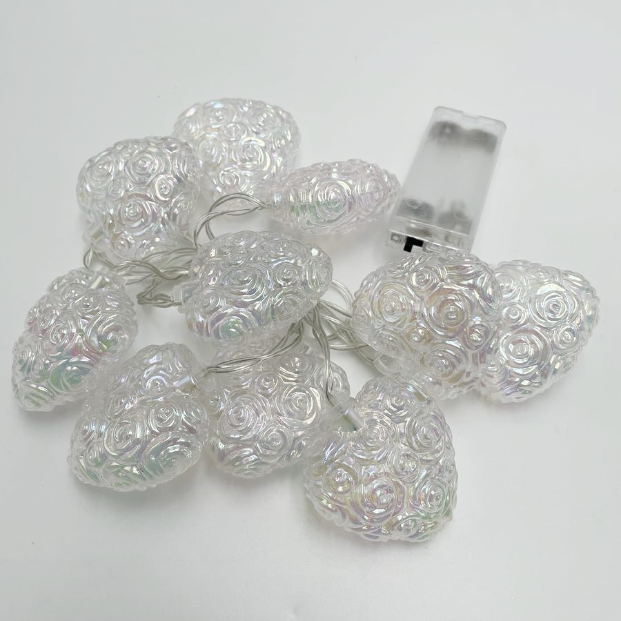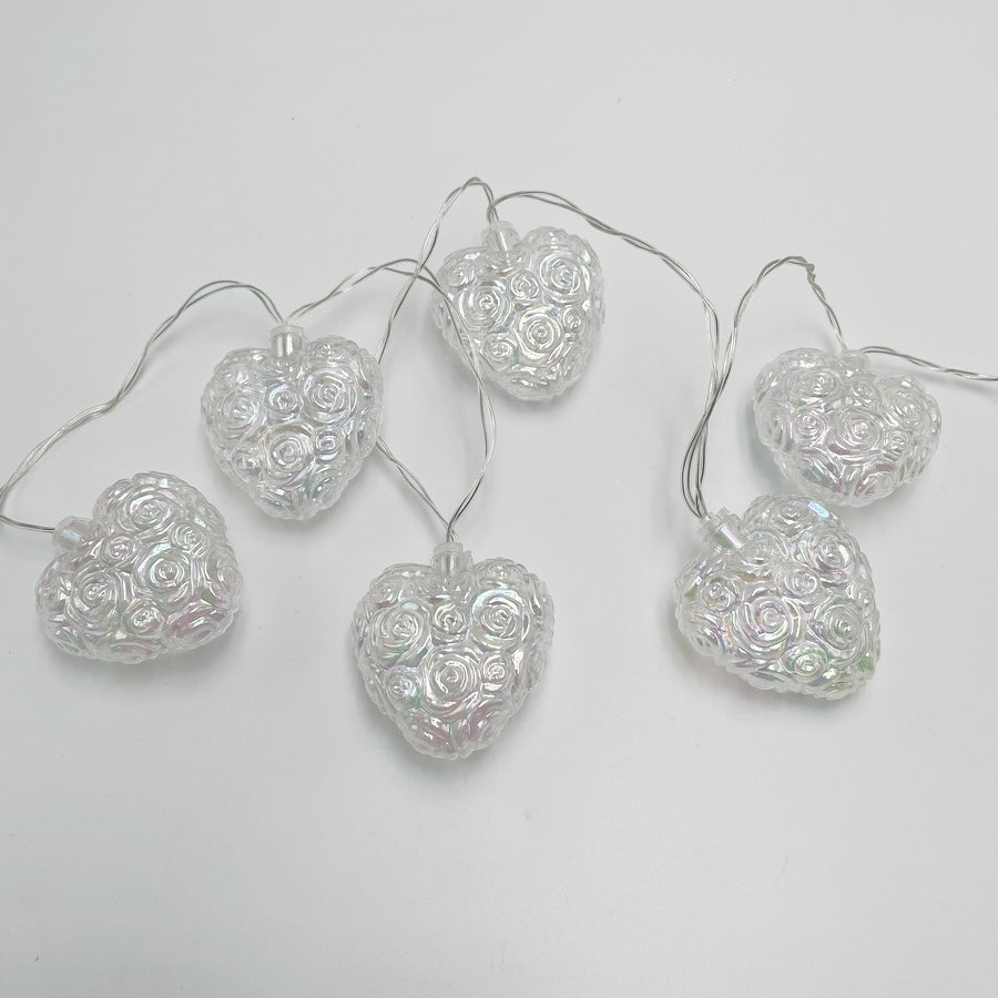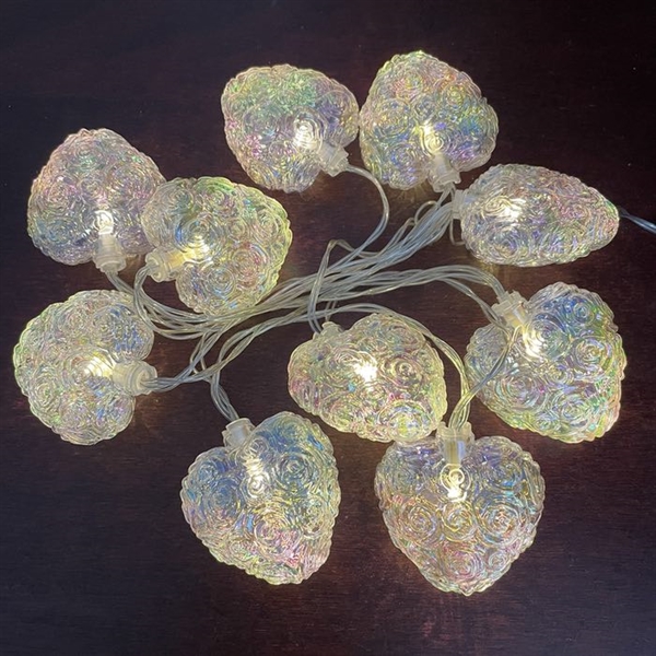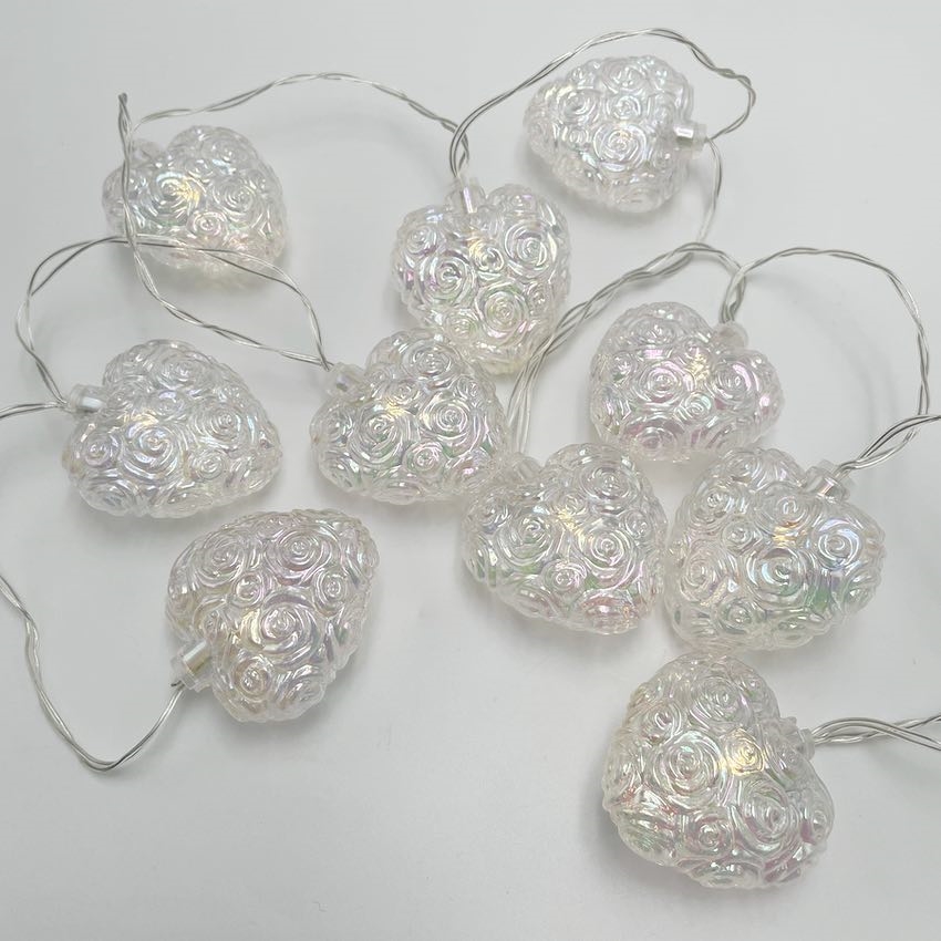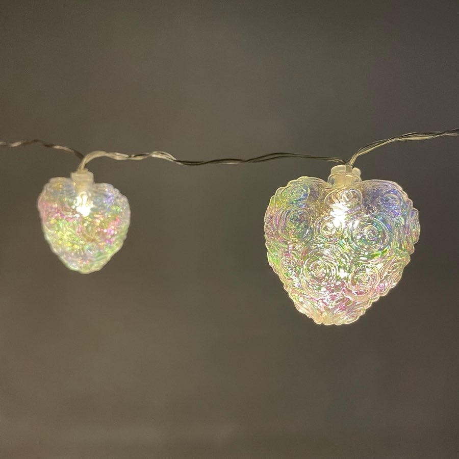 LED-lyskæde med iriserende hjerter - 1,6 m 10 LED