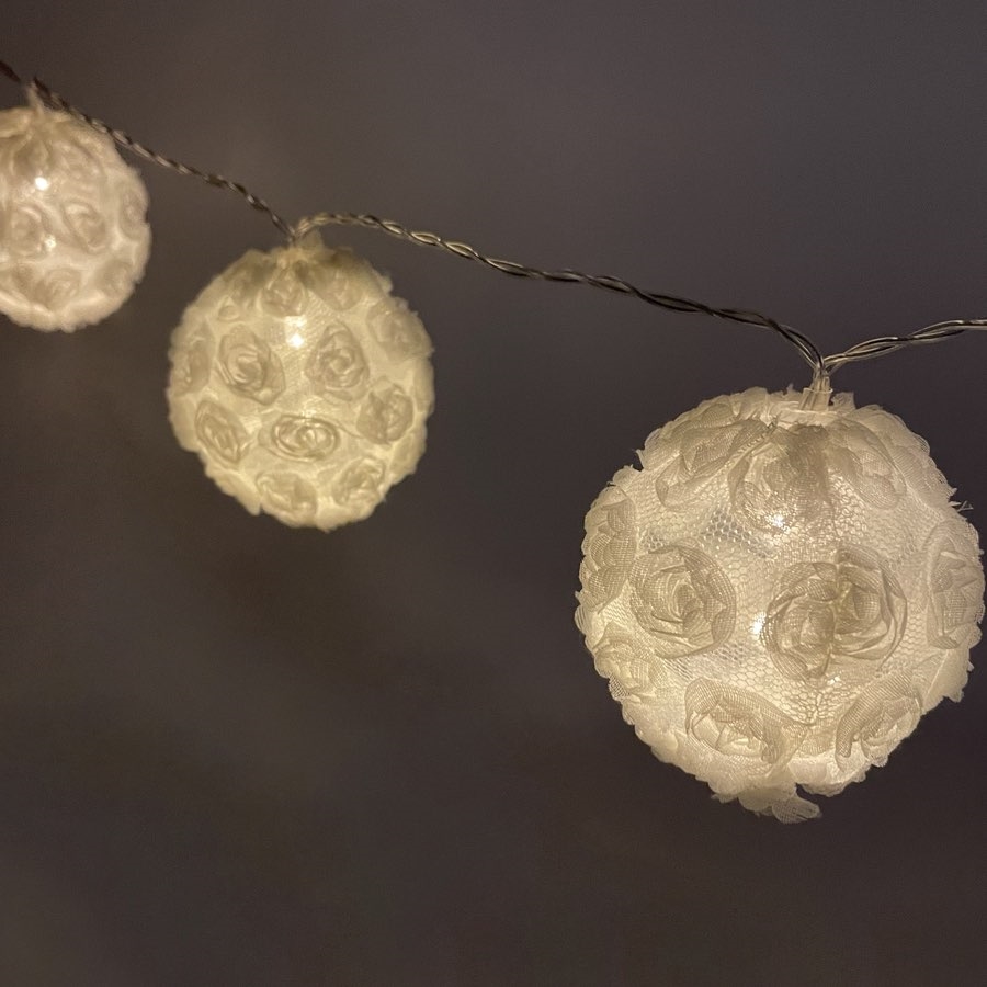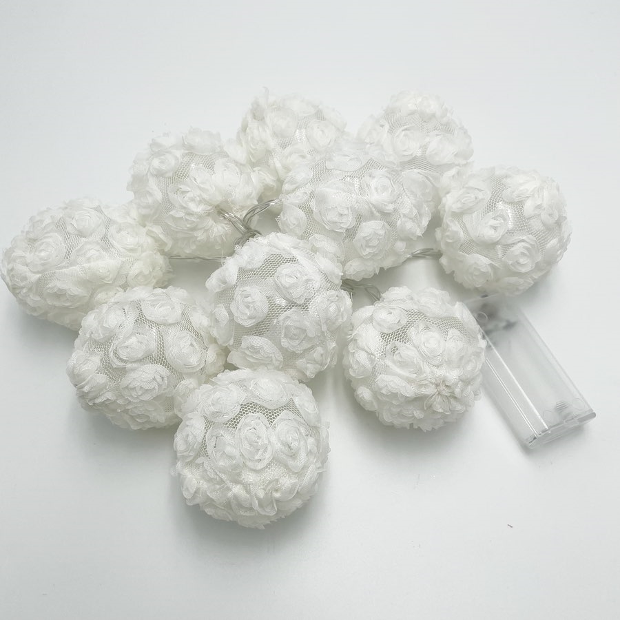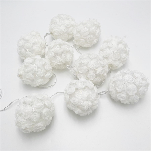 LED lyskæde med hvide rosenkugler – batteridrevet – 1,6 m 10 LED