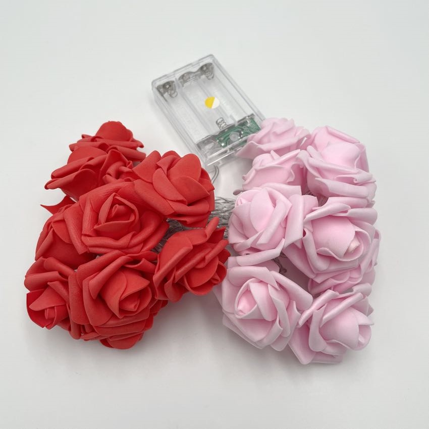 LED lyskæde med lyserøde og røde roser - 3 m 20 lys