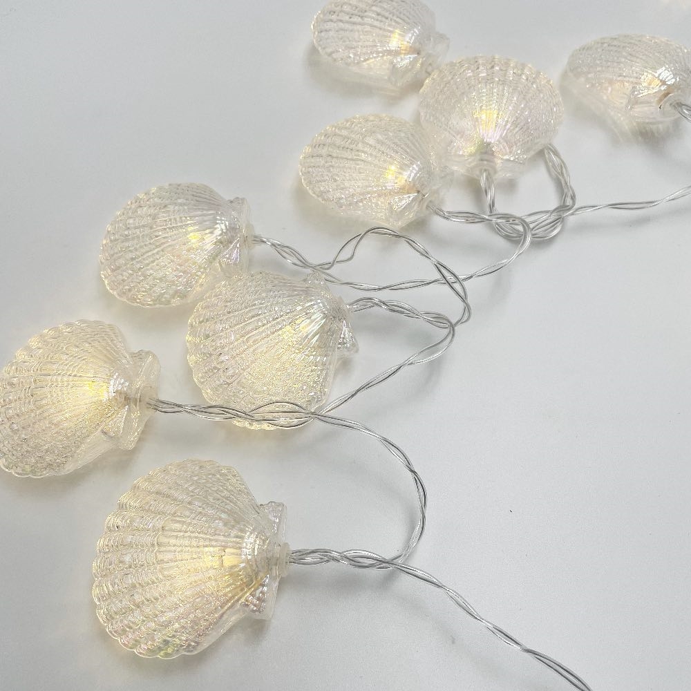 Smuk LED-lyskæde med muslingeskal-design, der skaber en hyggelig stemning med varmt hvidt lys, fås i længderne 1,5 m og 3 m, perfekt til indendørs dekoration i stuen, soveværelset eller til festlige lejligheder.