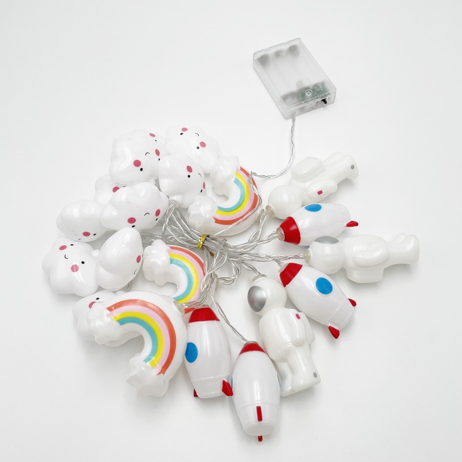 Batteridrevet lyskæde med raketter, skyer, regnbue, og astronauter - 3 m 20 lys
