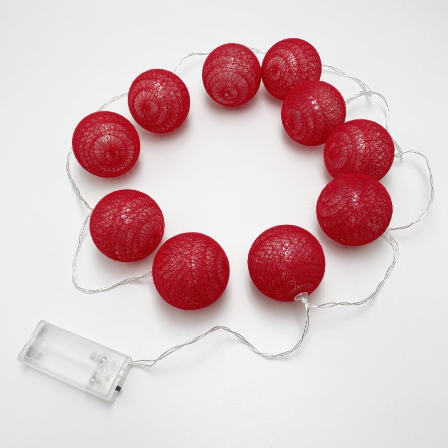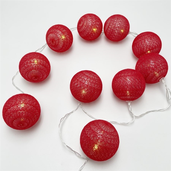 LED lyskæde med røde bomuldskugler – 1,5 m 10 lys – Ø 6 cm