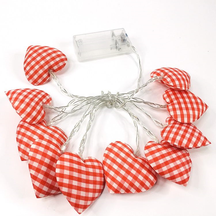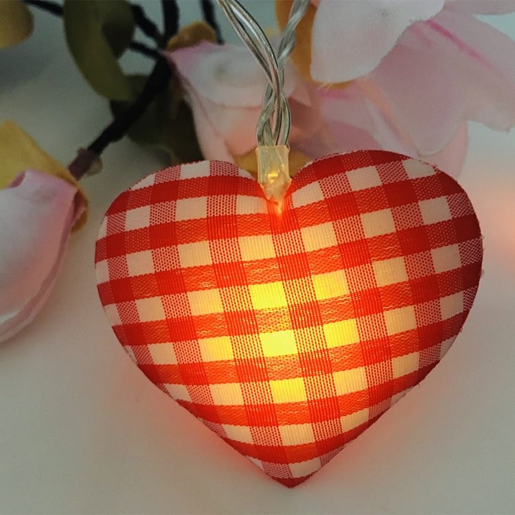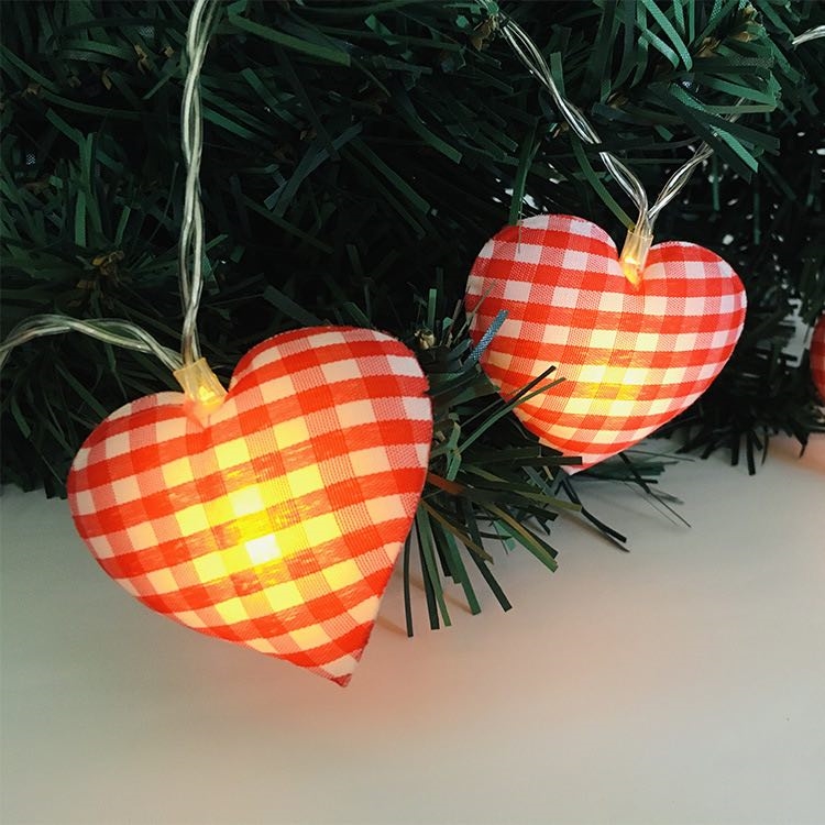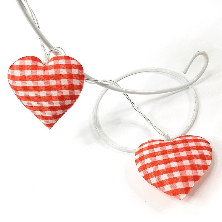 LED-lyskæde med rødternede hjerter er en dekorativ lyskæde, der tilfører rummet en varm og hyggelig stemning.