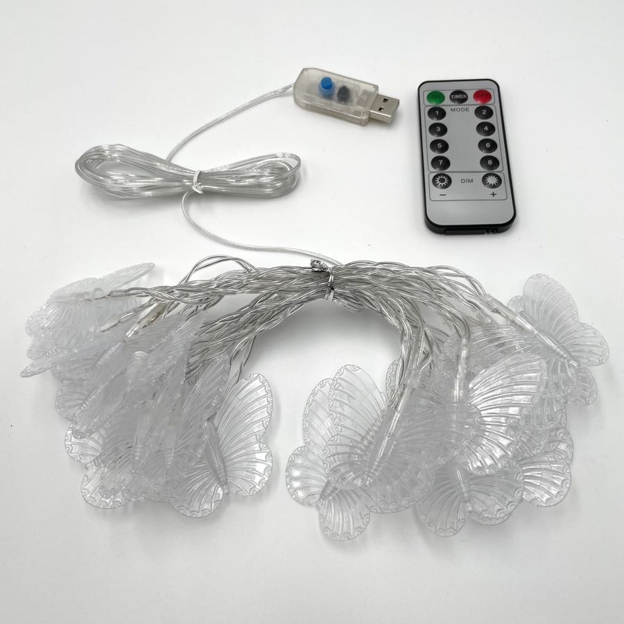 USB-drevet lyskæde med sommerfugle og fjernbetjening - 3 m 20 lys