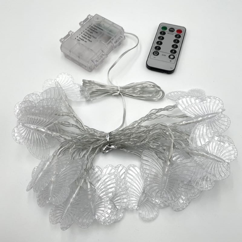 Batteridrevet lyskæde med sommerfugle og fjernbetjening - 4,5 m 30 lys