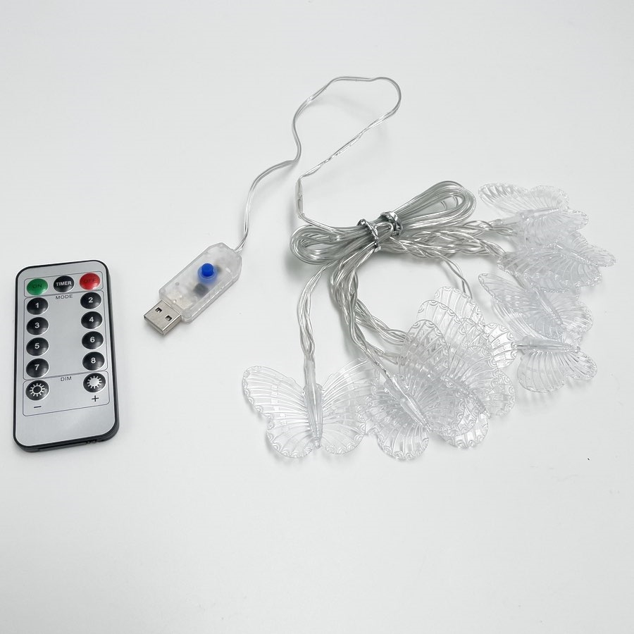USB-drevet lyskæde med sommerfugle og fjernbetjening - 1,5 m, 10 lys