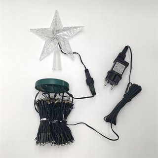 LED lyskæde til juletræspynt. Lyskæden kan skifte mellem varmt hvidt lys og multifarvet lys. Flot lys med lysende stjerne skaber en dejlig julestemning.