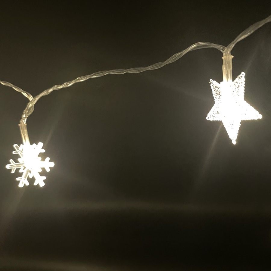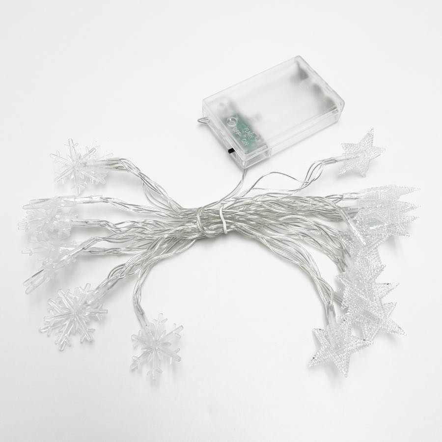 LED lyskæde med snefnug og stjernerLED lyskæde med snefnug og stjernerLED lyskæde med snefnug og stjernerLED lyskæde med snefnug og stjerner – 1,5 mLED lyskæde med snefnug og stjerner – 3 m