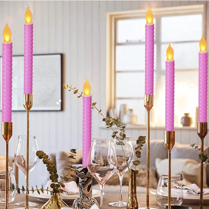 LED snoet kronelys i forskellige farver - 25 cm - 2 stk - lyserød