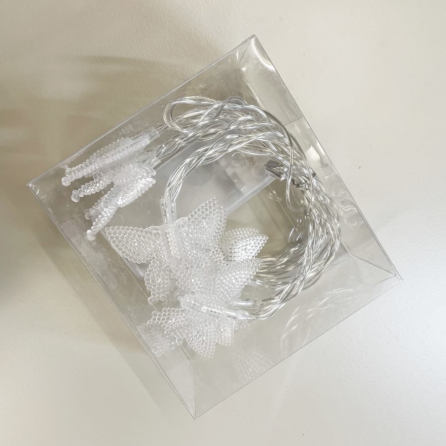 LED sommerfugl lyskæde med lilla lys skaber en magisk og drømmende stemning i rummet. De transparente sommerfugle udsender et blødt lilla skær, som giver et elegant og dekorativt udtryk, når lyset tændes. Perfekt som pynt i børneværelser, soveværelser, på hylder, spejle eller til fester og hyggelige arrangementer.