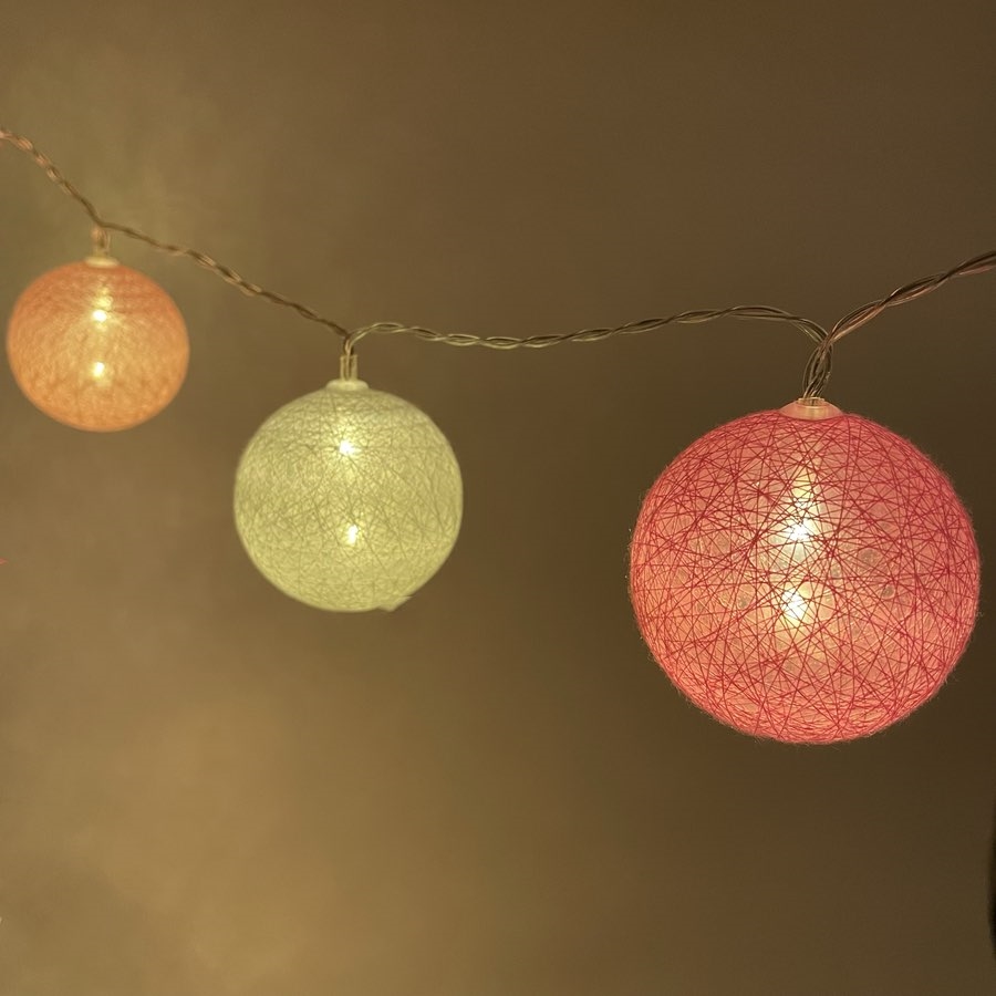 LED lyskæde med lyserøde og hvide bomuldskugler giver et blødt, varmt og hyggeligt lys, som passer perfekt til ethvert rum i hjemmet.